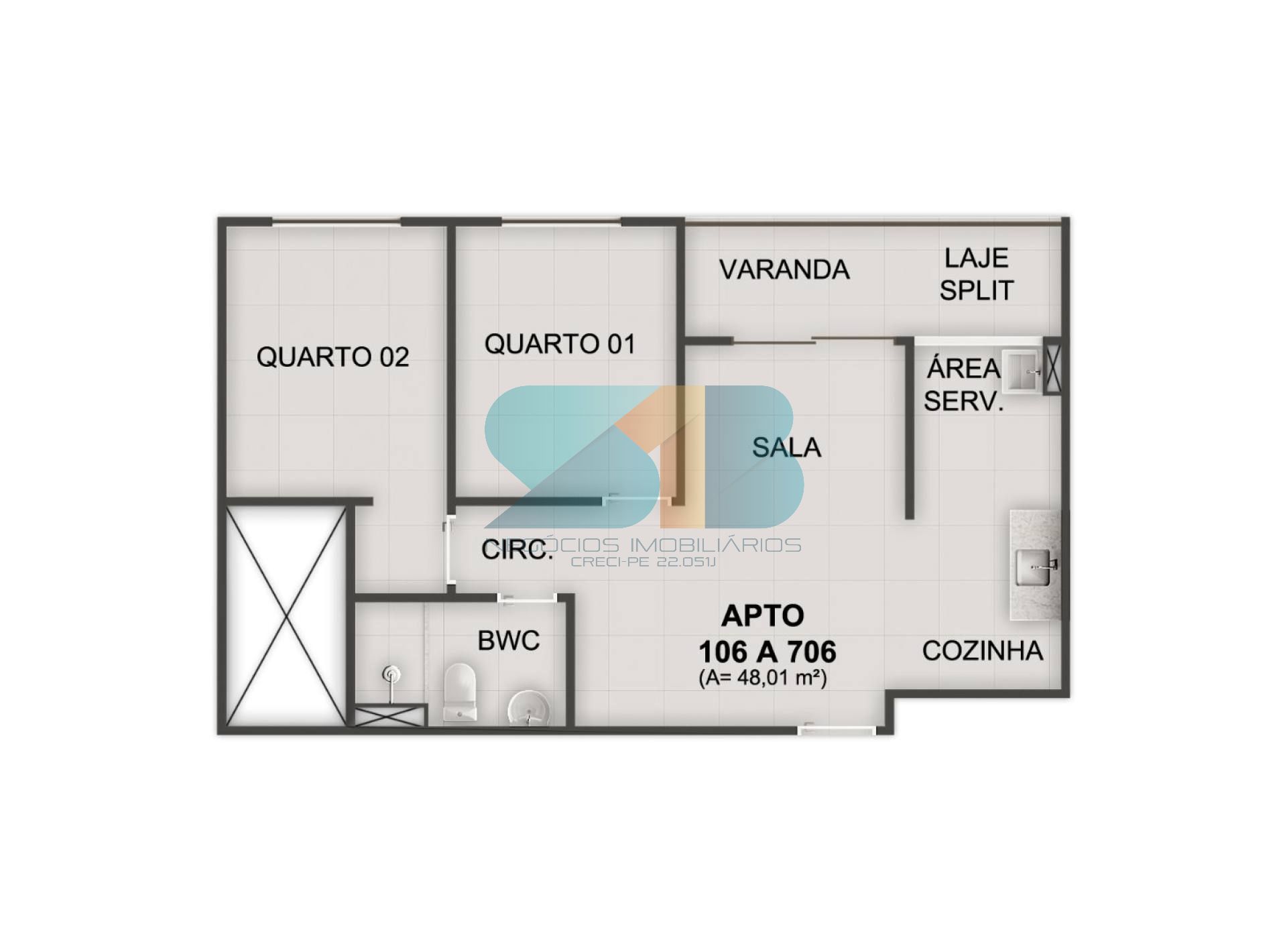 Área Privativa: 48.00m²