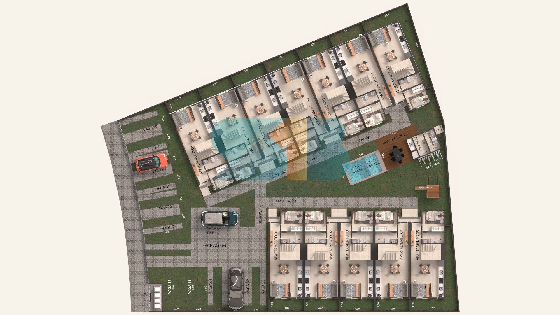 Esqueça os apartamentos convencionais. Estamos falando de uma casa tipo Duplex com 82m² de pura inteligência arquitetônica. O design em dois pavimentos cria a separação perfeita entre a vida social e o refúgio íntimo da sua família, proporcionando privacidade e funcionalidade em todos os momentos.