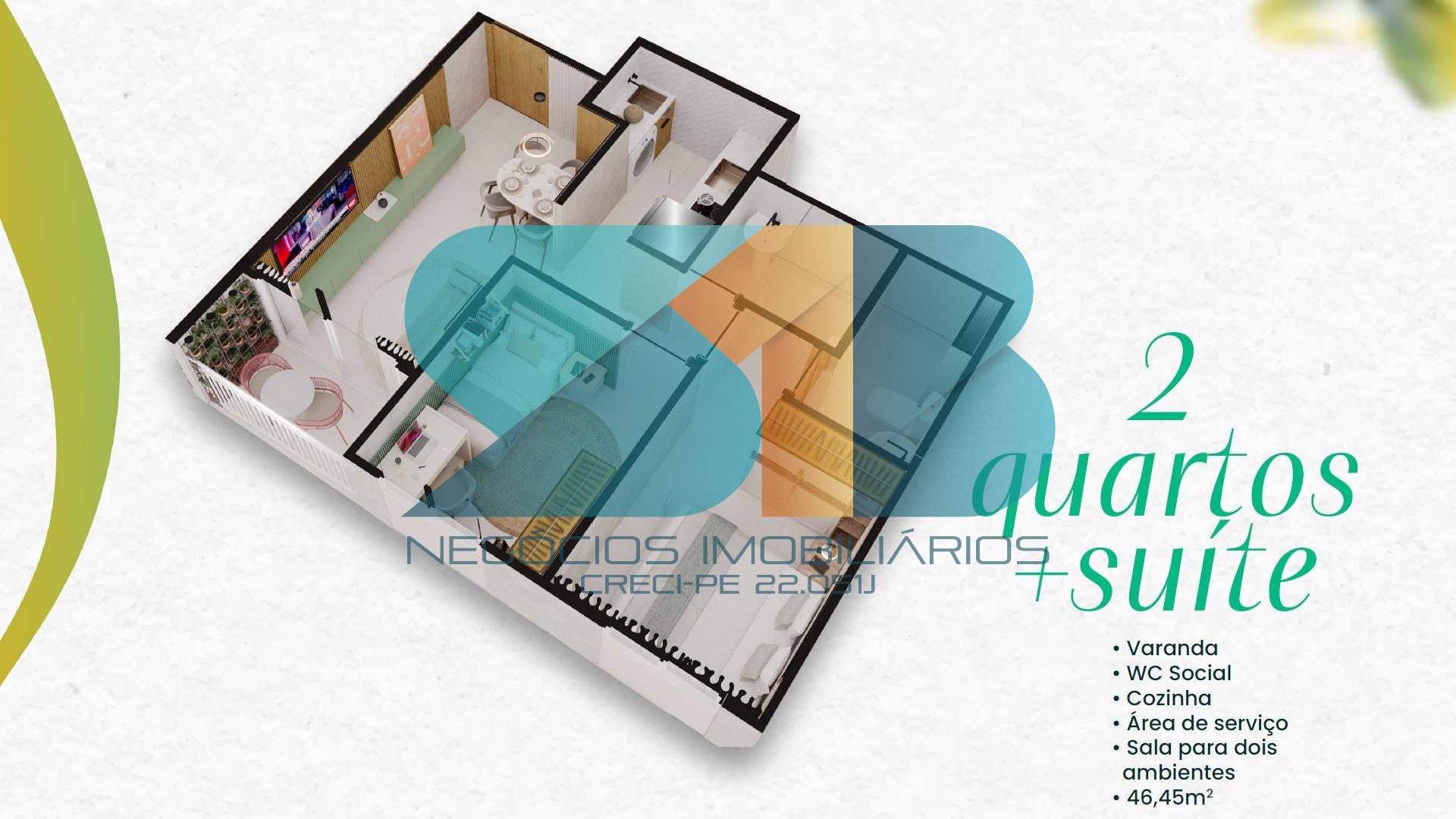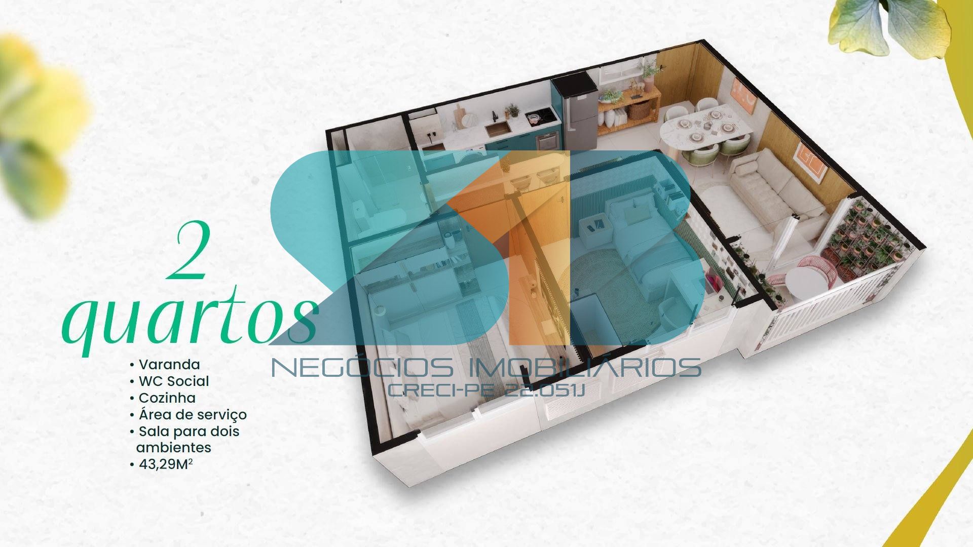 Apartamentos Inteligentes: Unidades de 02 quartos (com opções de suíte) e varanda, cuidadosamente pensadas para oferecer o máximo aconchego e otimização de espaço.